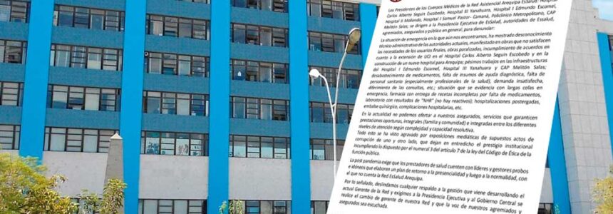 Arequipa: trabajadores de hospitales de EsSalud denuncian falta de personal y medicamentos