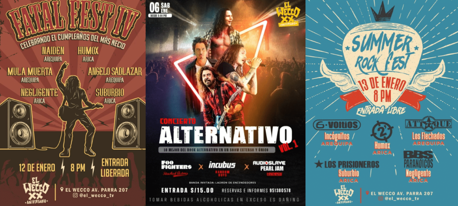 El sábado 06 de enero trae el Festival Alternativo con tributos a Foo Fighters, Incubus, Audioslave y Pearl Jam.