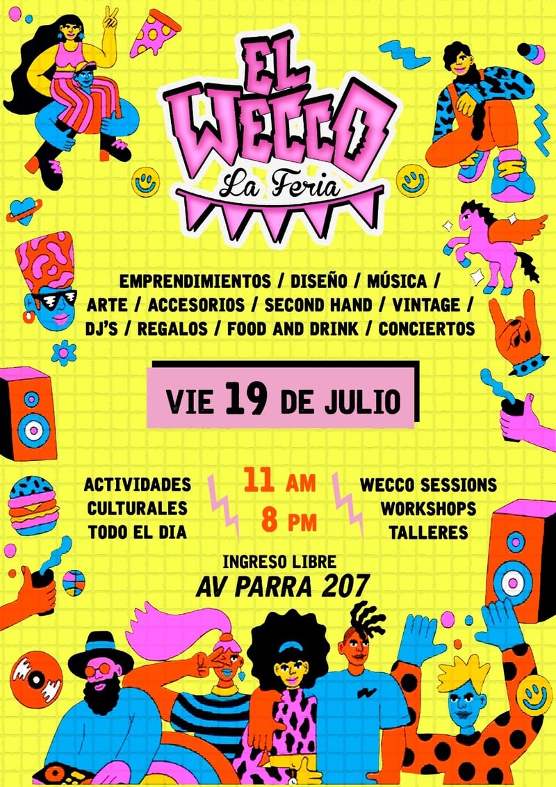 En resumen, El Wecco, La Feria se presenta como una feria integral que combina emprendimientos, diseño, música, arte, y actividades culturales en un solo lugar. Con entrada gratuita y una programación variada, es una oportunidad ideal para pasar un día diferente, descubriendo nuevos talentos y disfrutando de una oferta cultural rica y diversa. No te pierdas El Wecco La Feria este 19 de julio en la avenida Parra 207.