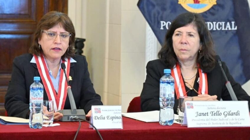 La fiscal de la Nación, Delia Espinoza, y la presidenta del Poder Judicial, Janet Tello, rechazan que las contrarreformas al sistema de justicia por las que el Congreso pueda elegir y suspender a magistrados supremos porque sería un retroceso en el equilibrio de poderes.