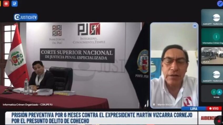 Aunque el exmandatario participaba de modo virtual, el fiscal de la causa, Germán Juárez le dijo al juez Víctor Alcocer que, Vizcarra Cornejo debió participar en la audiencia de prisión preventiva de manera presencial.