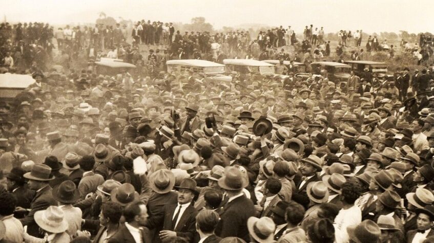 ¡Arequipa Revolución! El comandante Luis Miguel Sánchez Cerro con la multitud en Arequipa, el 22 de agosto de 1930. Foto: Fmurillo, Centro de Estudios Histórico Militares del Perú - CEHMP