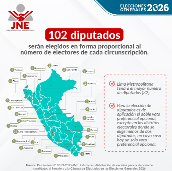 Según la distribución oficial establecida por el Jurado Nacional de Elecciones (JNE), Arequipa tendrá 6 diputados y 1 senador en el nuevo Parlamento bicameral que se conseguirá tras las Elecciones 2026.