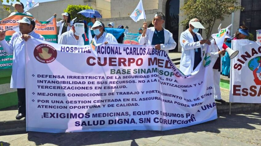 La huelga, iniciada el pasado 9 de septiembre, tiene como principales demandas mejoras en la atención de los asegurados, mayor abastecimiento de insumos y fármacos, capacitaciones continuas para el personal médico, equipamiento moderno y la construcción de un nuevo hospital para Arequipa.