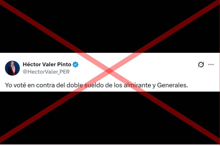 En unas publicaciones en la red social X, Héctor Valer, congresista por Somos Perú, se refirió al sentido de su votación respecto a la denominada ley de doble sueldo, que permitió que exmiembros de las Fuerzas Armadas (FF. AA) y de la Policía Nacional del Perú (PNP), entre ellos los propios congresistas, puedan recibir pensiones militares y policiales además de los sueldos que perciben por sus labores actuales en otras entidades públicas.