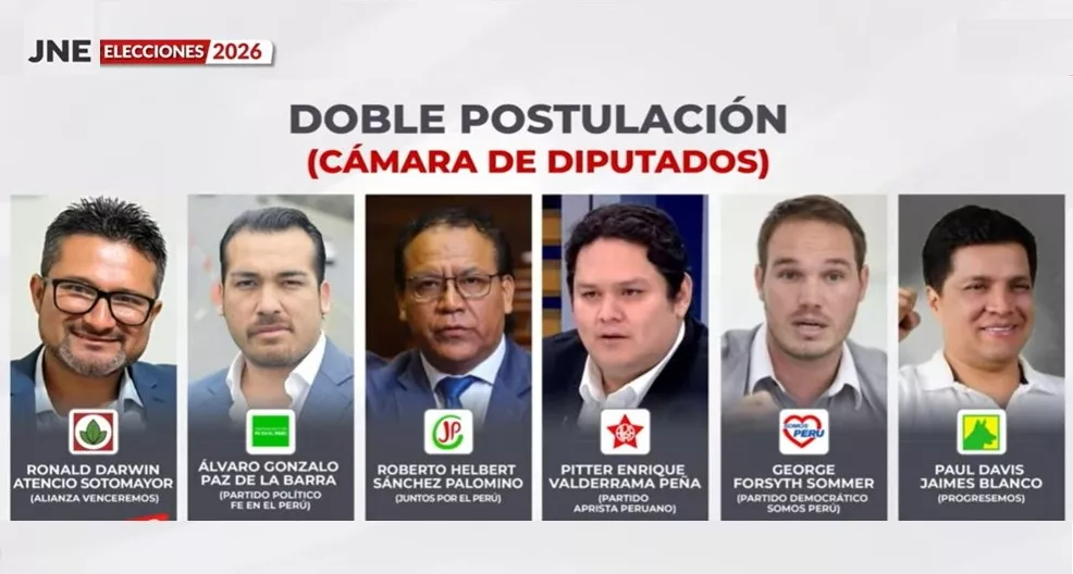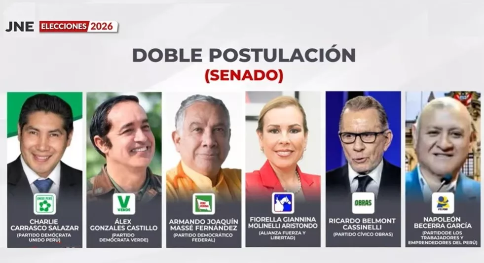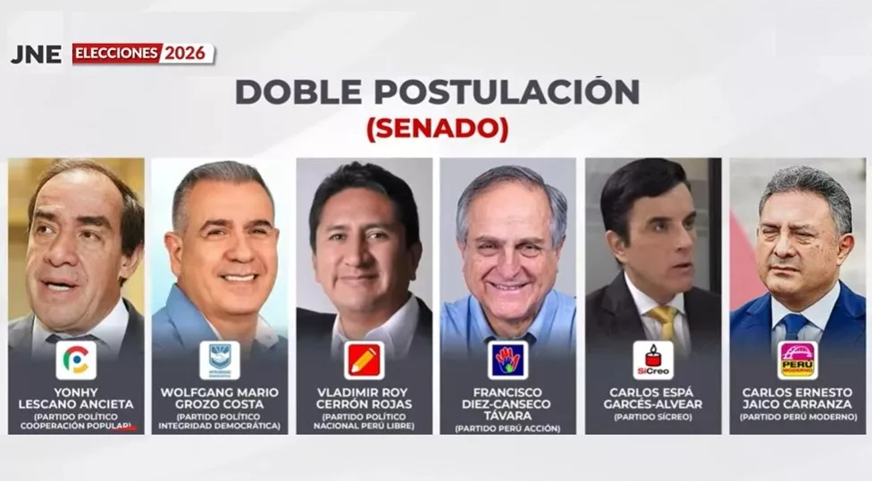 De acuerdo con los registros del Jurado Nacional de Elecciones (JNE), de los 36 candidatos a la presidencia de la República, existen 27 que tienen una doble postulación para las Elecciones 2026, este 12 de abril. De estos, seis van también para diputados y 21 para senadores.