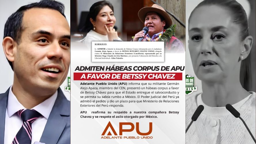 El abogado y ex gobernador regional de Puno, Germán Alejo Apaza, presentó un hábeas corpus a favor de Betssy Chávez. Este documento legal busca obligar al Gobierno de José Jerí a que le entregue el salvoconducto a la ex primera ministra para que pueda viajar a México, país que ya le concedió asilo diplomático.