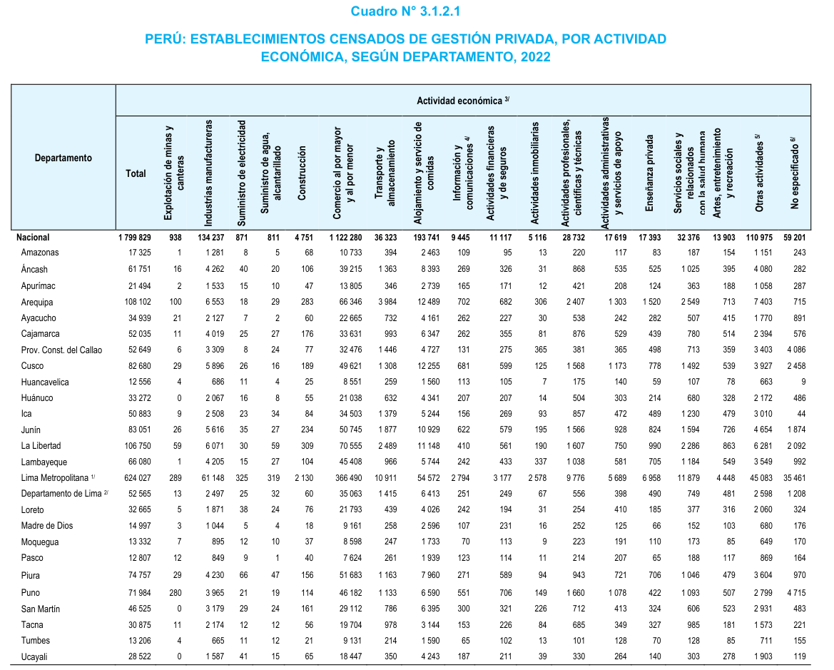 Fuente: Establecimientos de gestión privada del V Censo Nacional Económico, INEI 2022