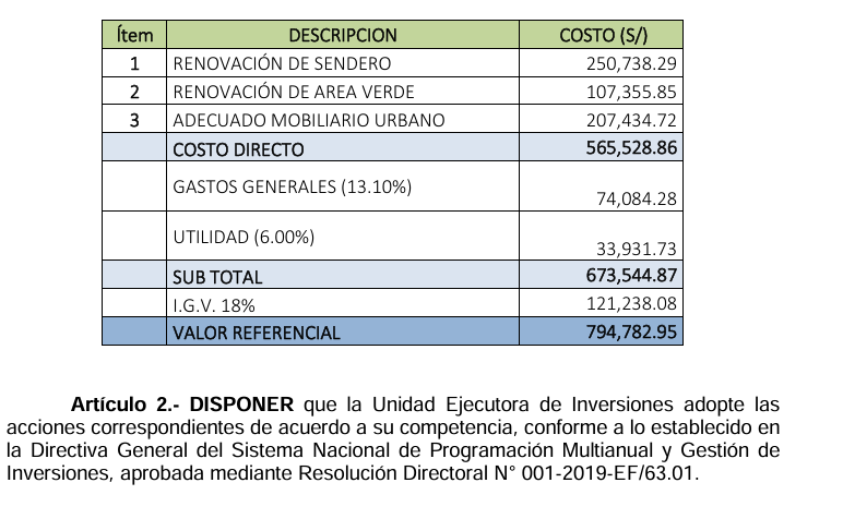 Otra intervención fue la del parque Sector 03, en Villa El Salvador, cuya inversión fue cercana a los S/.800,000. El expediente técnico, según Infobras, fue reformulado el 6 de noviembre de 2023: