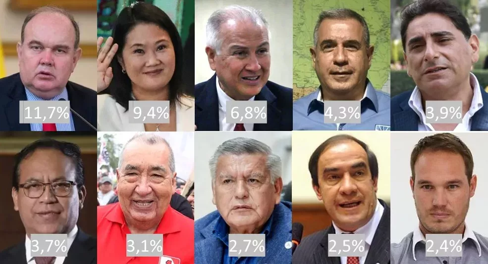 Los candidatos que están entre los primeros lugares de preferencia electoral y tienen un ascenso sostenido son Alfonso López-Chau, Wolfgang Grozo y Roberto Sánchez.