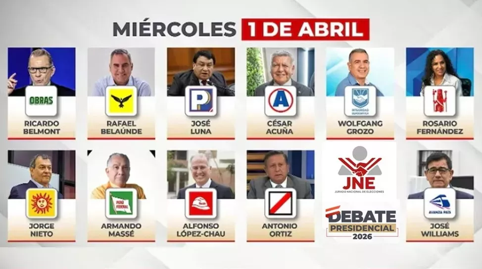 Culmina este miércoles 1 de abril el Debate presidencial 2026 en la segunda etapa organizada por el Jurado Nacional de Elecciones (JNE) para que los candidatos expongan sus propuestas sobre los temas de Educación, innovación y tecnología y Empleo, desarrollo y emprendimiento.