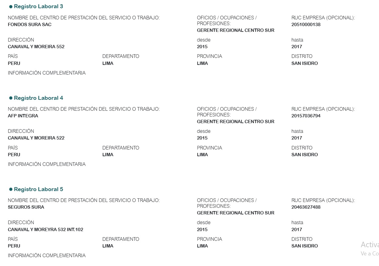 Además, el postulante fue gerente regional del centro sur de Seguros Sura y Fondos Sura SAC entre el 2015 y 2017. Dichos entes privados pertenecen al grupo colombiano Sura, dueño de otra AFP peruana Integra. Esta administradora de pensiones es la más multada (S/ 6 millones) y la que más utilidades registró en 30 años (S/ 2 644 millones).