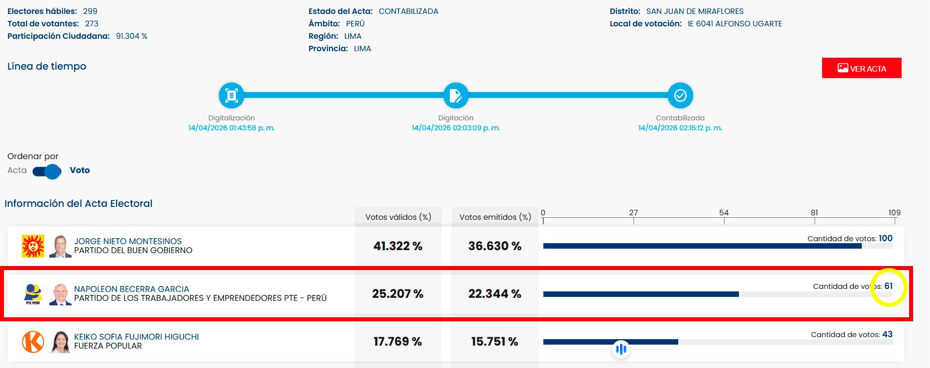 La digitalización sí concuerda con el acta electoral