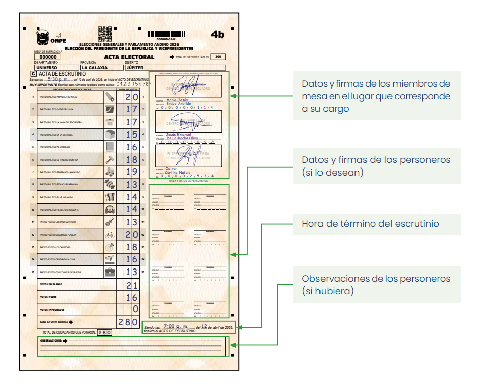 Desde el área de prensa de la ONPE, precisaron que «el cartel de resultados es un documento legal que data de una ley del siglo pasado, pero el que tiene valor es el acta porque en ella van las firmas de los miembros de mesa».