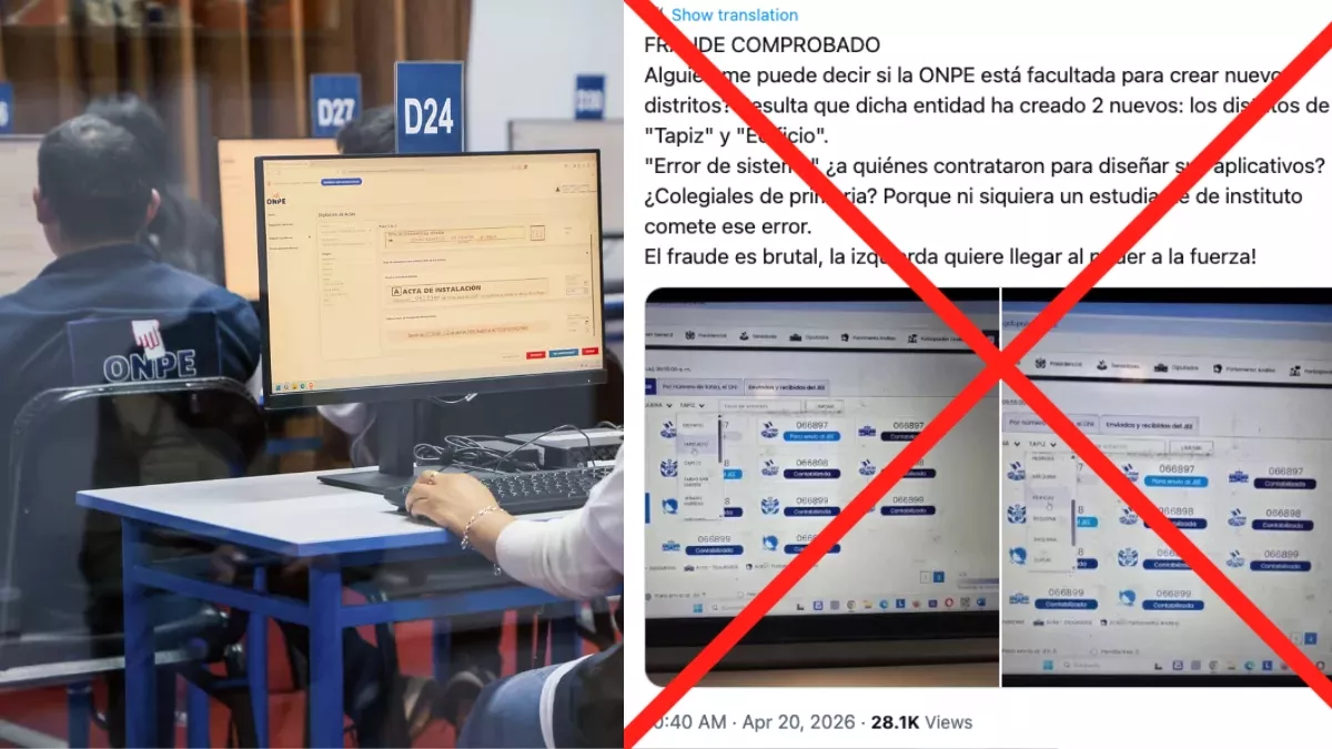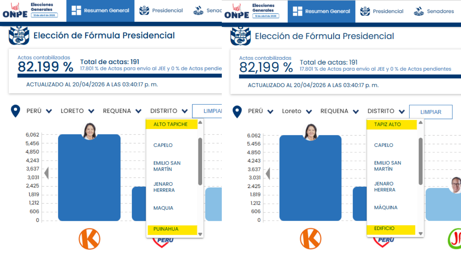 Es falso que la ONPE haya creado dos distritos adicionales en Loreto para la plataforma que muestra los resultados de las elecciones generales 2026