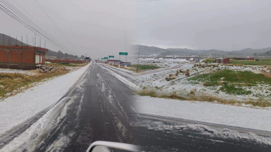 Una fuerte granizada se registró este fin de semana en el distrito de Zepita, dejando vías y zonas aledañas cubiertas por una densa capa de hielo que dificulta el tránsito tanto vehicular como peatonal. El fenómeno climático tomó por sorpresa a conductores y pobladores, quienes alertan sobre el alto riesgo de accidentes en la carretera principal.