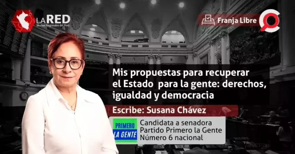 Susana Chávez Alvarado, candidata a senadora por el partido Primero La Gente afirma que el Perú vive una crisis democrática provocada por el Congreso.