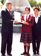 Ella confiesa no haber sentido nada cuando le dieron la noticia de haber ocupado el primer lugar en una lista de ingreso al mejor colegio del Perú. "Ni emoción, ni ganas de llorar", dice Yasmín Lazo Cahui. Fue como llenar una ficha y listo. Pero al día siguiente encabezaba un elenco prodigioso de muchachos de secundaria a quienes ya no sorprendía la más alta calificación en cualquier materia del colegio. Sacar puntajes excelentes en los exámenes es cosa de todos los días. Esa es la historia de Yasmín que, con segundo de secundaria, postuló desde el que era su colegio, Nuestra Señora de La Asunción, al igual que otros 64 mejores alumnos de instituciones educativas públicas. Todos ellos eran los elegidos para estudiar en el Colegio Mayor Presidente del Perú, un proyecto que incluiría a los alumnos de los primeros puestos y, por supuesto, a los mejores maestros del país, junto a especialistas de distintas áreas como Psicología, Economía, Marketing, Literatura y más; con el fin de crear un semillero de talentos e investigadores que pudieran destacarse en nuestro país y el mundo. Para este año, de la ciudad de Arequipa sólo ingresaron 33 alumnos. Entre ellos, dos alumnas del colegio Romeo Luna Victoria: Maricruz Taco Quispe para cuarto año y Tessy Radshell Justo Vilcapaza para quinto año de secundaria; junto a ellas, Carolina Alexandra Gordillo Are y Jennifer Cruz, otras dos alumnas del colegio María Murillo de Bernal, todas del distrito de Cerro Colorado. El alcalde distrital reconoció este logro entregándoles premios y diplomas.
