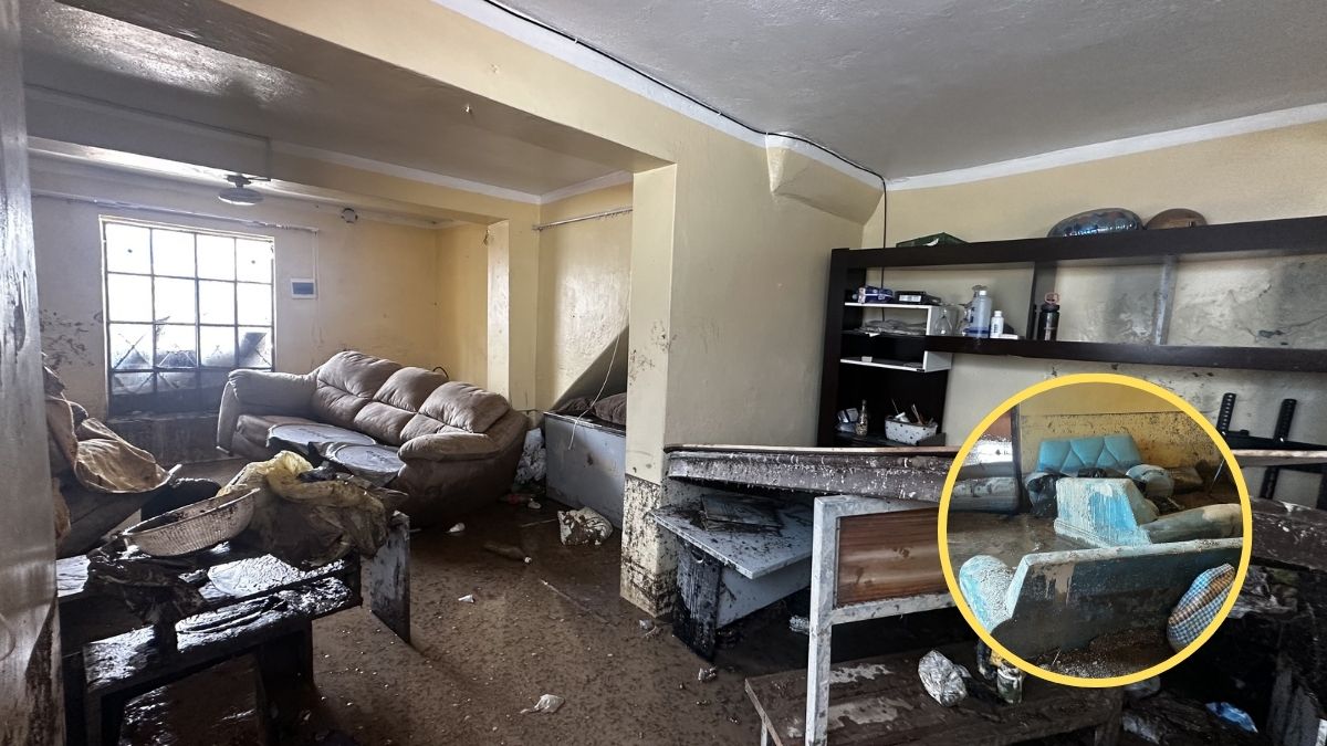 Al volver, encontraron su vivienda cubierta de sedimentos y rocas. Los alrededores parecían haber corrido la misma suerte, no solo casas, sino también instituciones educativas e incluso gimnasios resultaron afectados por la fuerza del agua. En la entrada principal, la tierra había alcanzado casi un metro de altura. Esto redujo el acceso y obligaba a cualquiera que quisiera ingresar a agacharse. Además, el suelo no era firme, por lo que colocaron una tabla de madera que funciona, hasta hoy, como pasarela improvisada desde la puerta hacia el interior.